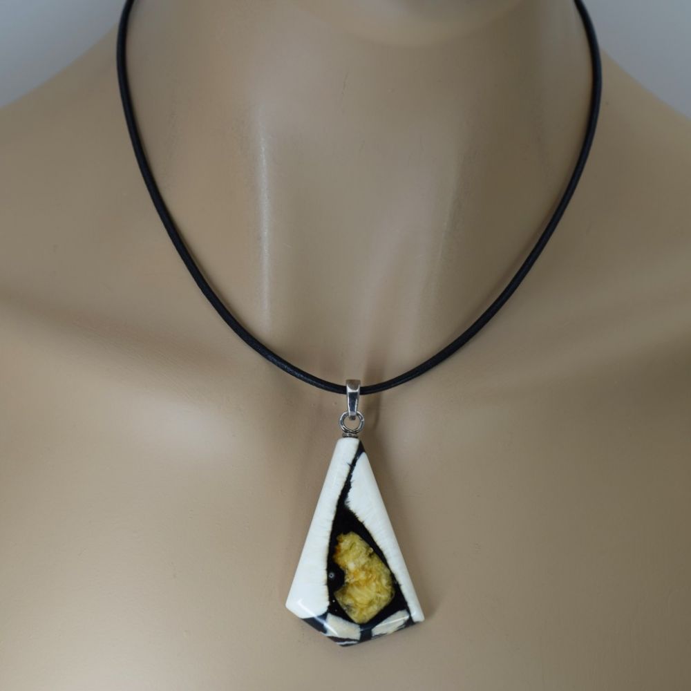 angefertigt aus hellem Mammut Elfenbein aus Sibirien und Butter Scotch Bernstein. Alter des Mammut ca. 15-20000 Jahre