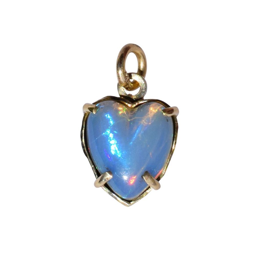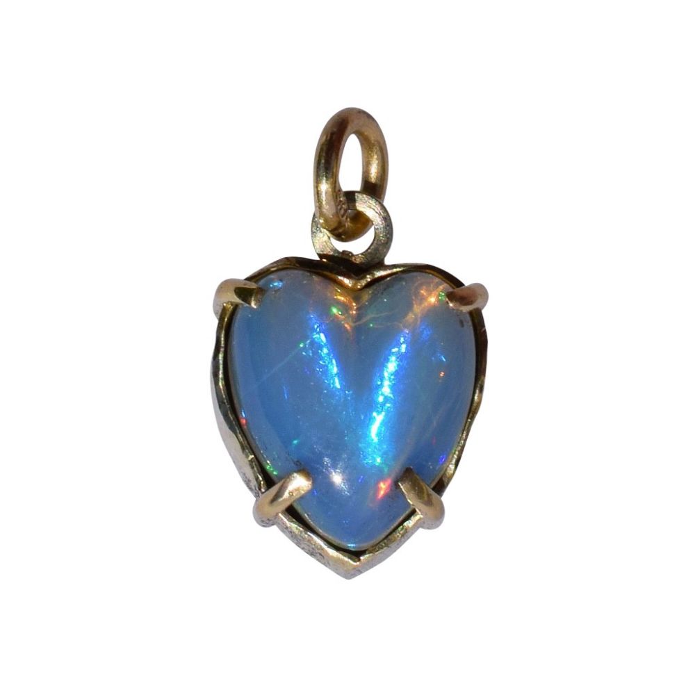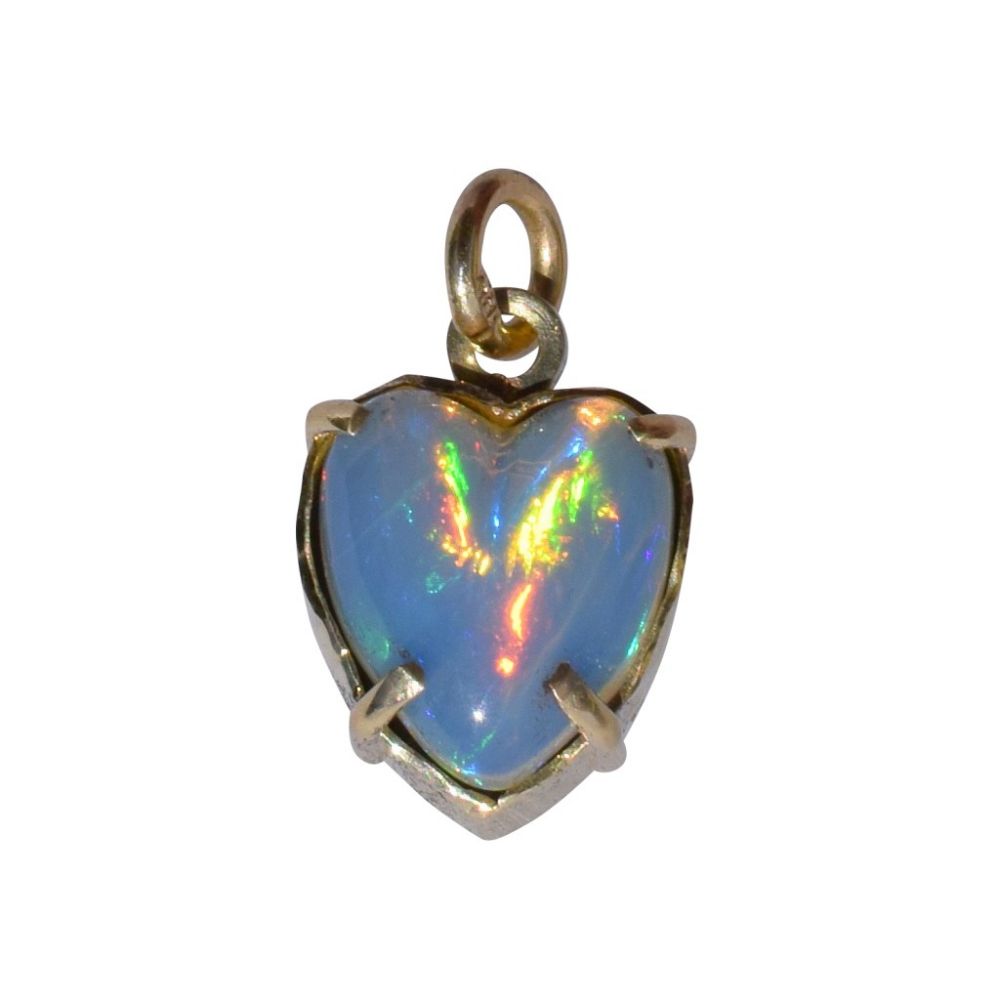 Farbenprächtiger Herz Anhänger formschön gewölbt, mit deutlichem Farbenspiel von Grün, Blau bis Orange. Zargen Fassung in 585 Gold-14 Karat Gold